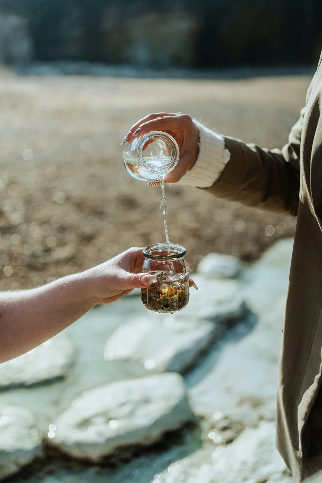 Memory jars are a really wonderful idea for elopements especially! Get yourself some small, clear glass jars - you can usually find some at charity shops. And then at your elopement, fill it with things from the environment around you, so that you’ll be able to take home with you a tangible reminder of the place that you got married in. At a beach, this could be sand, seashells, pebbles, even seawater!